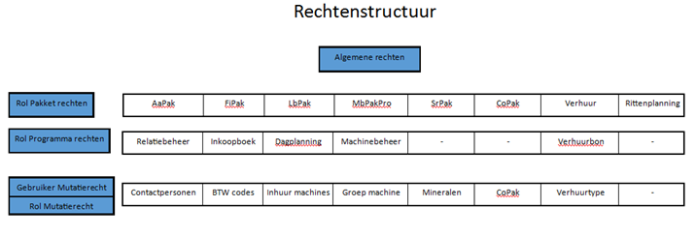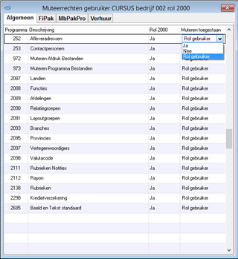 Onder de programma rechten staan diverse programma’s vermeld waarbij u de mogelijkheden kunt beperken per rol.