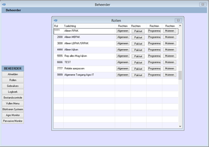 Een belangrijk gegeven hiervoor: rol 9999 heeft altijd alle rechten en kan dus niet per gebruiker aangepast worden.