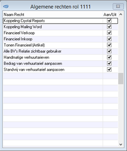 Door het vinkje te zetten op Aan of Uit betekent dat een rol de koppeling in de software wel of niet mag gebruiken.