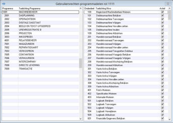 Door een programma aan de linkerkant te kiezen, verschijnt aan de rechterkant een rij met specifieke rechten voor dit programma.