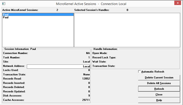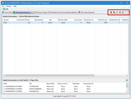 Dan klikt u op het tabblad MicroKernel Sessions om de gebruikers in beeld te krijgen:
