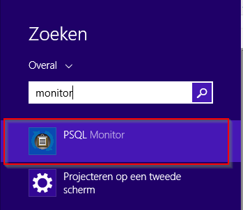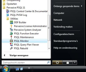 Start > Alle Programma’s > Pervasive > Other Utilities > PSQL Monitor (de exacte locatie kan in uw situatie afwijken):