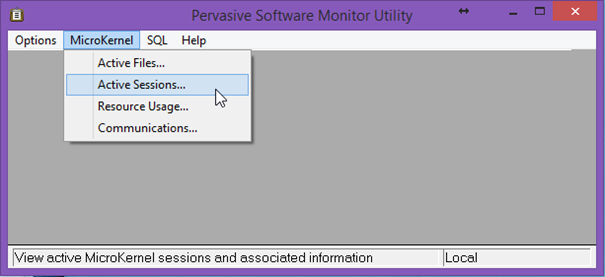 Voor Pervasive 11 krijgt u nu het volgende scherm waar u in het menu kiest voor MicroKernel en Active Users kiest.