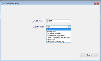 Hiermee kunt u het rapport exporteren naar een bepaald formaat. Door de specifieke inrichting van een Crystal Report lay-out is het niet vergelijkbaar met een standaard Word of Excel formaat. |