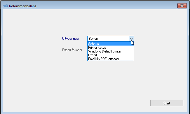 | Windows Default Printer | Het rapport afdrukken op de standaard printer welke binnen Windows is ingesteld. | ||||||||||||||||||