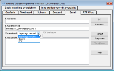 U kunt het E-mail bericht zelf intypen dat aan de e-mail wordt meegegeven en het PDF briefpapier.