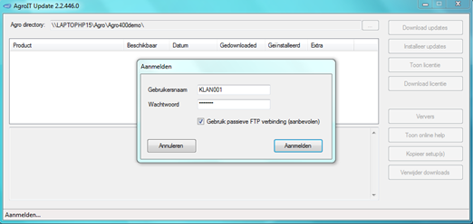 U dient zich aan te melden met de gegevens van het Agro IT Update Account.