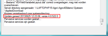 Als het systeem de Agro server directory kan vinden, zal hij de actuele versie tonen, in andere gevallen krijgt u een foutmelding.